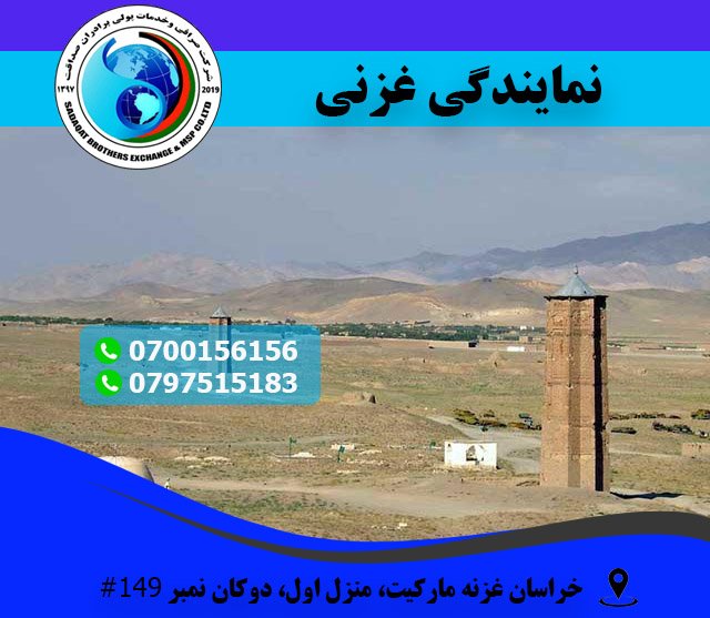 شرکت صرافی و خدمات پولی برادران صداقت افتخار دارد که نمایندگی خود را در خراسان غزنه مارکیت ولایت غزنی افتتاح نموده است