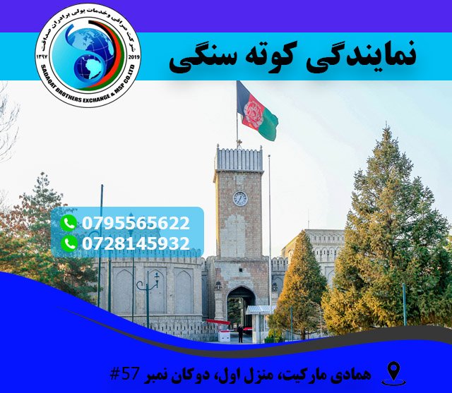 .شرکت صرافی و خدمات پولی برادران صداقت افتخار دارد که نمایندگی خود را در کوته سنگی، همادی مارکیت ولایت کابل افتتاح نموده است