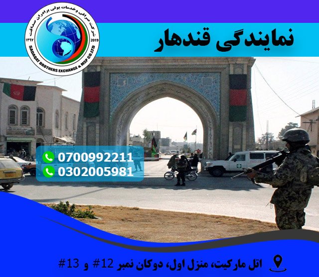شرکت صرافی و خدمات پولی برادران صداقت افتخار دارد که نمایندگی خود را در اتل مارکیت ولایت قندهار افتتاح نموده است